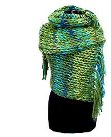 Each scarf is made with yarn of various colors, textures and fabric content. A ribbon or trim is added to both Short and Long scarves.